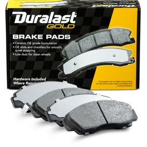Duralast gold ceramic brake pads for a quieter ride and ultra low brake dust.